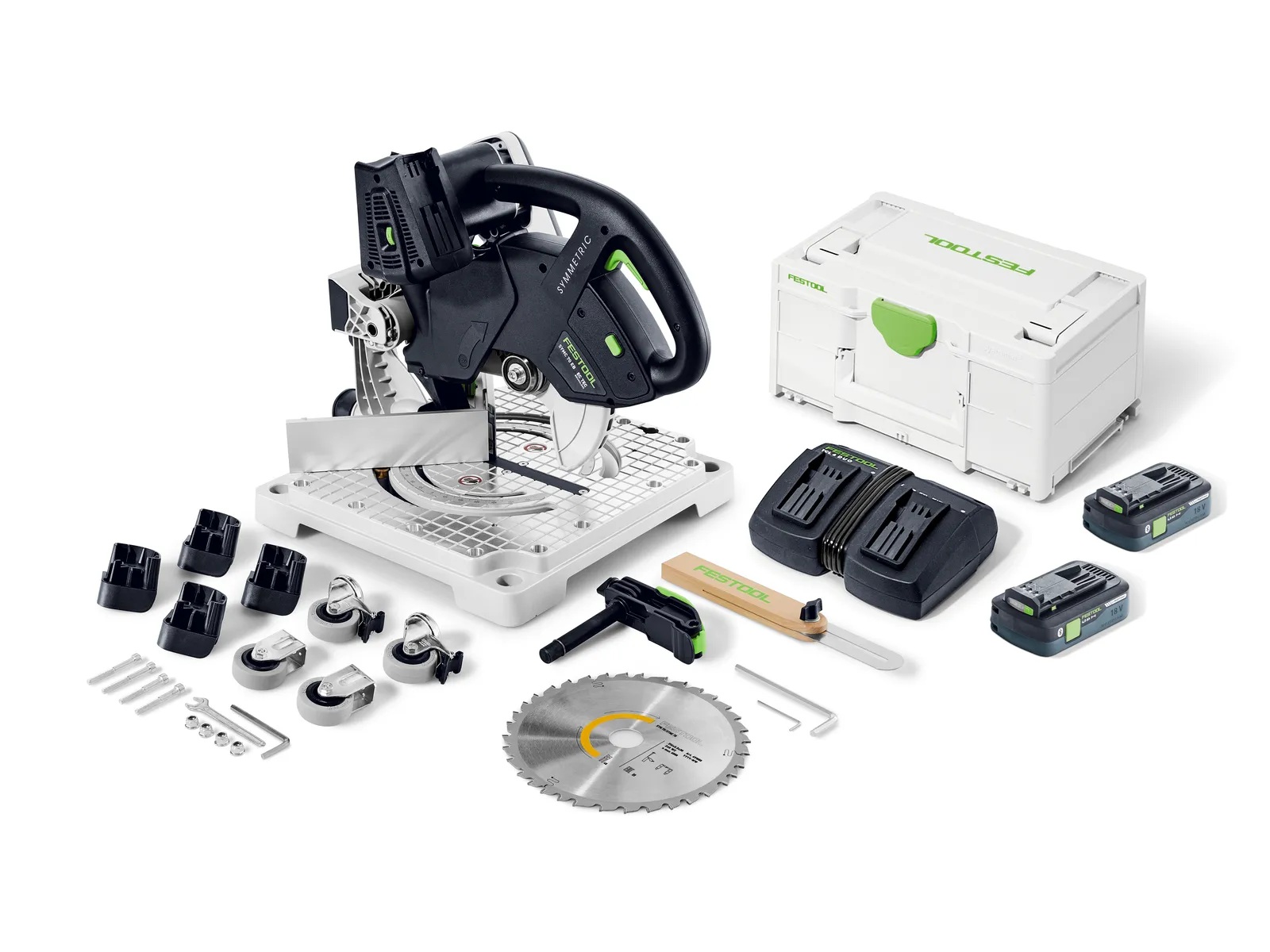zāģripa WOOD FINE CUT HW 216x2.3x30 W48. augstas precizitātes leņķmērs. rullīšu komplekts. detaļas spīles. sešstūra galatslēga SW 6. sešstūra galatslēga SW 2. enerģijas komplekts SYS 18V 2x4.0/TCL 6 DUO